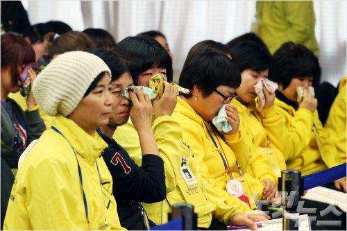15일 서울 명동 YWCA 대강당에서 4.16세월호참사특별조사위원회 주재로 14일부터 열린 '4.16 세월호 참사 진상규명에 관한 제1차 청문회'에서 유가족이 김석균 전 해양경찰청장의 답변을 들으며 눈물을 흘리고 있다. 윤성호기자