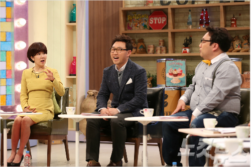 꽃다방의 방송 녹화 장면, 이성미, 방송인 김현욱, 방송인 이혁재(좌로부터)