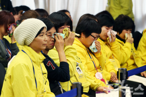 15일 서울 명동 YWCA 대강당에서 4.16세월호참사특별조사위원회 주재로 14일부터 열린 '4.16 세월호 참사 진상규명에 관한 제1차 청문회'에서 유가족이 김석균 전 해양경찰청장의 답변을 들으며 눈물을 흘리고 있다. (사진=윤성호 기자)