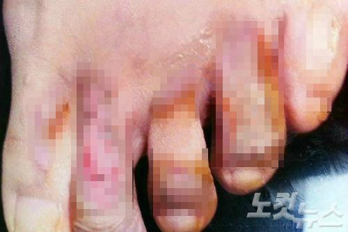 16일 군 인권센터가 공개한 A하사의 발가락 사진. 화상 입은 흉터가 역력하다. (사진=군 인권센터 제공)