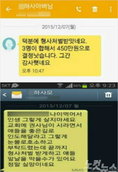 ◇ 피의자 부모들에게 문자가 왔다. "인생 그렇게 살지 말라"