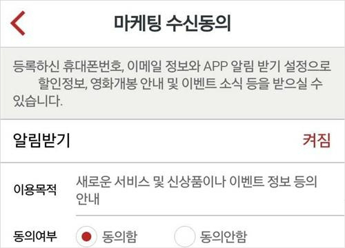 앱 설정에서 푸시 알림 승인 여부(알람 ON/OFF)에 대한 동의와 별도로 영리목적의 광고성 정보 수신에 대한 이용자의 명시적인 동의가 필요하다.