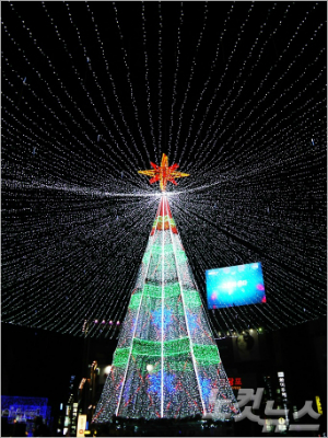 부산 중구 광복동에 있는 높이 20m의 대형 트리.(사진=부산CBS 송호재 기자)