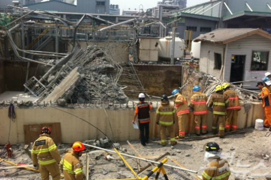 가로 17m, 세로 10m의 거대 구조물이 폭삭 주저앉는 바람에 주변은 아수라장으로 변했다.