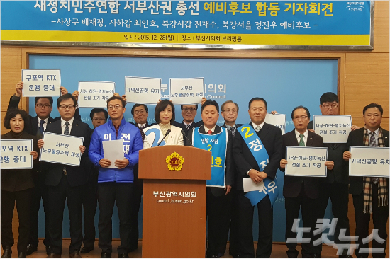새정치민주연합 서부산권 총선 후보 4명은 28일 오전 부산시의회 브리핑룸에서 합동기자회견을 갖고 "서부산의 잃어버린 10년을 끝내겠다"고 다짐했다.