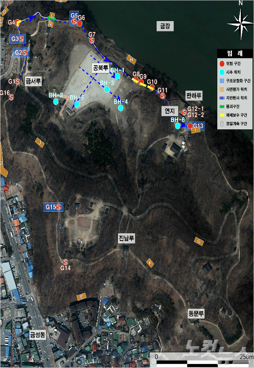 이번 정밀조사를 계기로 문화재청과 충남도, 공주시는 성벽 전체의 상태를 6단계로 분류해 이상 여부에 대한 모니터링과 보수 계획 등을 세우기로 했다.