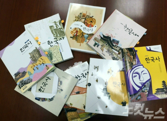고등학교 한국사 8종 검인정 교과서. 금성출판사, 두산동아, 미래엔, 비상교육, 천재교육, 리베르스쿨, 지학사, 교학사. (사진=홍성일 기자/자료사진)