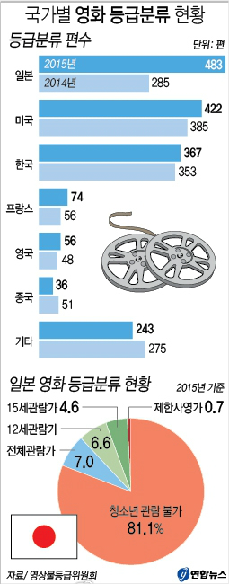 안지환 영등위 정책홍보부장은 "등급분류를 받은 일본영화가 사상 가장 많고 이 중 '청불' 비율이 82%에 달한다는 사실은 일본 성인영화의 유통이 큰 폭으로 증가했다는 뜻"이라며 "대부분 부가시장을 겨냥한 성인물로 파악된다"고 설명했다.