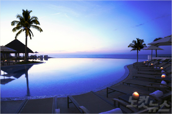 백색의 인공구조물과 파란 바다의 조화, 칸쿤 르블랑의 환상적인 경관과 디자인은 눈앞에 두고도 믿기 힘들 만큼 아름답다.