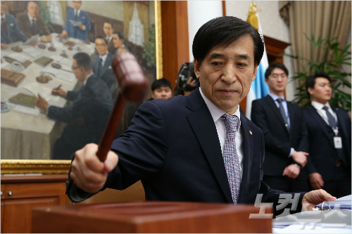 이주열 한국은행 총재가 14일 서울 남대문로 한국은행에서 열린 금융통화위원회에 참석해 의사봉을 두드리고 있다.(사진공동취재단)