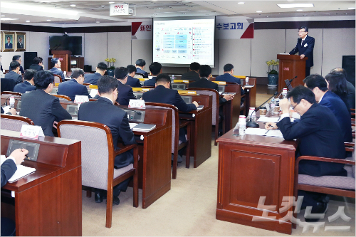 손교덕 은행장을 비롯해 본부 부서장 등 70여명은 지난 13일 오후 본점 회의실에서 '신 인터넷뱅킹시스템 구축 착수 보고회'를 열고 신인터넷뱅킹시스템 구축 프로젝트에 대한 세부추진계획을 공유하고 점검했다.