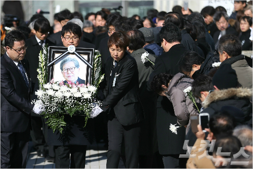 저서 '감옥으로부터의 사색'으로 유명한 고 신영복 성공회대학교 석좌교수의 영결식이 18일 서울 구로구 성공회대에서 엄수됐다. 추모객들이 고인의 마지막 가는 길을 배웅하고 있다. (사진=윤성호기자)
