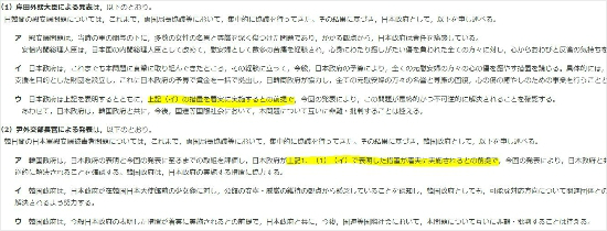 일본 발표문과 똑 같은 내용의 합의문과, 이와는 내용상 중대한 차이가 있는 양국 외교관의 실제 발표 내용을 홈페이지에 나란히 게재해 뭐가 '정본'인지 알 수 없는 상황입니다.