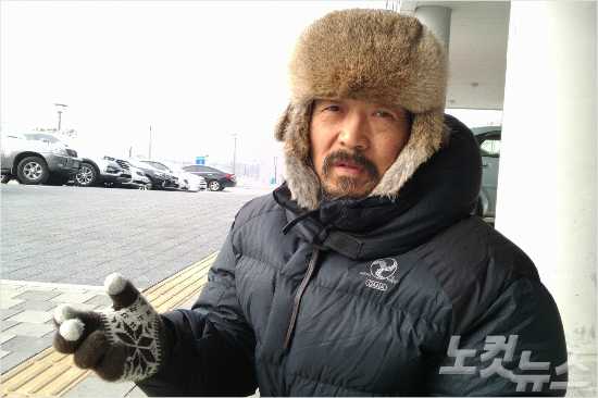 한파가 사흘 째 이어지고 있는 21일 오전 원주지방환경청 현관 앞에서 만난 박그림 녹색연합 공동대표. 그는 설악산 케이블카 환경영향평가서 초안이 부실하게 작성됐다며 반려를 요구하는 노숙농성을 열흘 째 이어가고 있다.