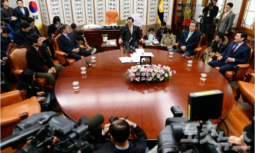 정의화 국회의장과 여야 지도부 (사진=윤창원 기자)