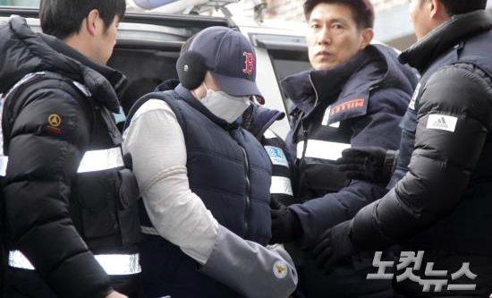 '부천 초등생 시신훼손 사건' 피의자 부모 중 부친 최모 씨가 21일 오전 현장검증을 위해 경기도 부천시 원미구 다세대 주택으로 향하고 있다. (사진=박종민 기자)