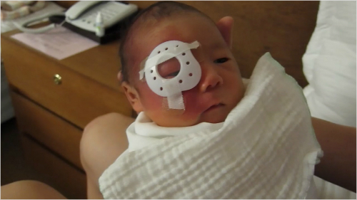 얼굴 반쪽이 온통 붉었던 주완이는 녹내장까지 동반되어 높은 안압으로 시력을 잃을 수도 있는 상황이었다.