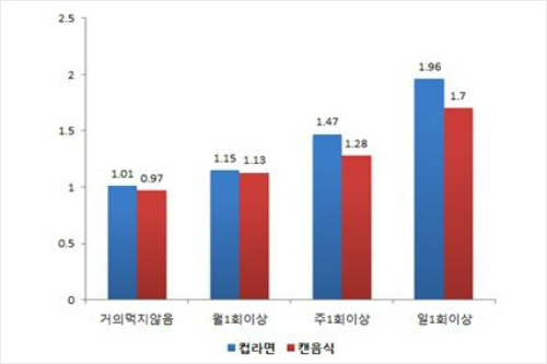 컵라면이나 캔음식 등 가공음식을 자주 먹을수록 환경호르몬의 일종인 비스페놀A의 체내 농도가 높아지는 것으로 나타났다.
