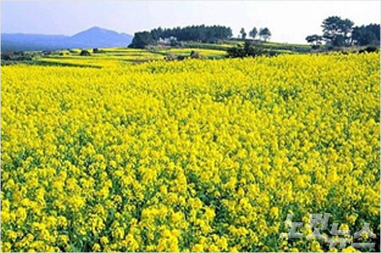 텍스트를 유채꽃들이 만개한 제주도의 아름다운 풍경. (사진=노랑풍선 제공)