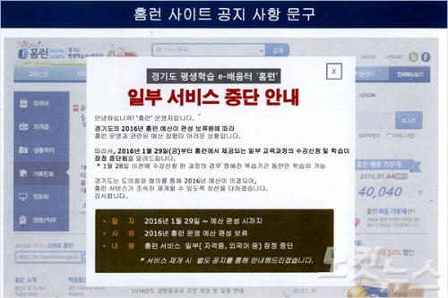7일 경기도와 경기의회 등에 따르면 경기도가 운영해 온 인터넷 무료 강의 서비스인 '홈런'과 '창조학교'가 지난달 29일부터 서비스가 전면 중단됐다.