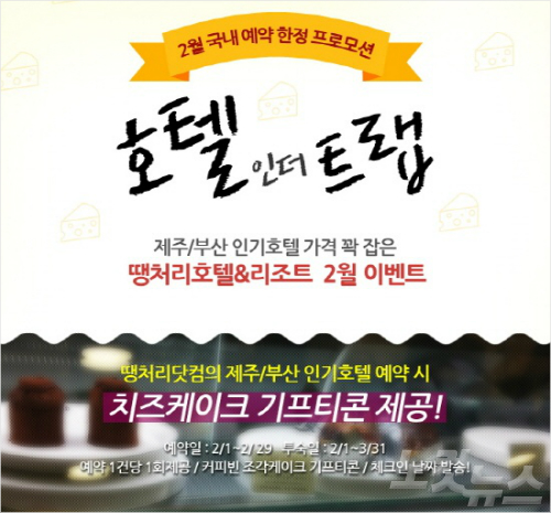 국내 호텔도 이용하고 치즈케이크 기프티콘도 받을 수 있는 땡처리닷컴의 '호텔 인더 트랩' 이벤트. (사진=땡처리닷컴 제공)