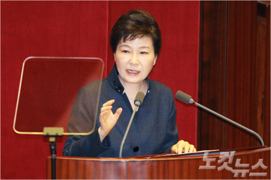 박근혜 대통령이 16일 오전 국회 본회의에서 북 핵ㆍ미사일 위협 및 쟁점법안 등과 관련 국정에 관한 국회 연설을 하고 있다. (사진=윤창원 기자)