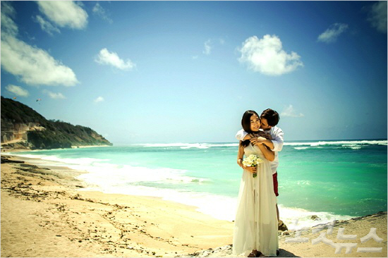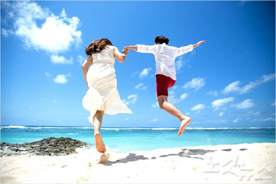 아름다운 해변에서 신혼부부가 행복한 시간을 보내고 있다. (사진=허니문리조트 제공)