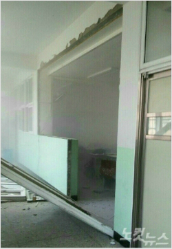 부탄가스 폭발로 한 중학교의 벽이 무너졌다. (사진=해당 중학교 학부모 제공)
