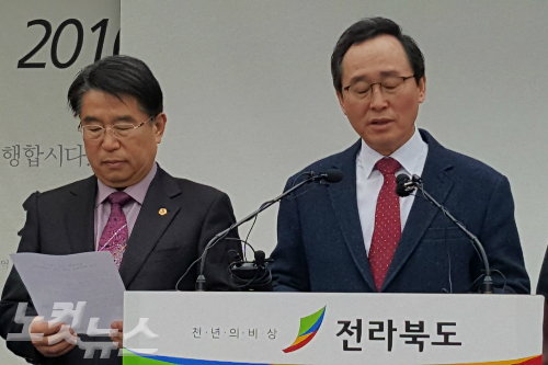 송하진 전라북도지사와 김영배 전라북도의회 의장은 18일 기자회견을 통해 전북교육청의 예산 미편성으로 지급이 중단된 어린이집 누리과정 운영비에 대해 3개월 분을 우선 지급하겠다고 밝혔다.