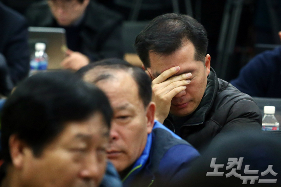 지난 12일 오전 서울 여의도 중소기업중앙회 대회의실에서 열린 개성공단 기업협회 비상총회 참석자들이 굳은 표정을 짓고 있다. (사진=황진환 기자)