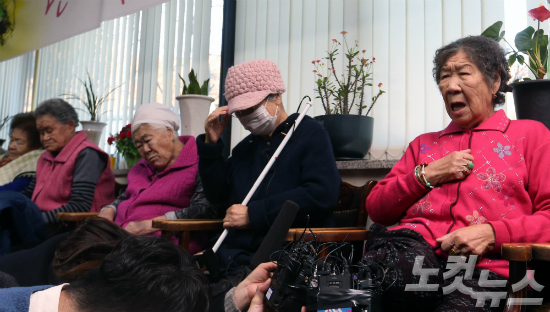 지난해 12월 28일 경기도 광주시 나눔의 집에서 위안부 피해 할머니 강일출(88)씨가 한일 외교장관 회담 결과에 대한 입장을 밝히고 있다. (사진=자료사진)