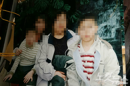 십수 년 전에 찍은 것으로 추정되는 이들의 가족사진 한 장이 삐뚤게 누워있었지만, 지난해 2월에 숨진 아버지 사진은 수납 선반 안에 반듯이 세워져 있다.