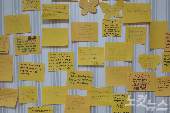 빈소 한켠에는 평화나비와 평화나비네트워크 회원들이 붙여놓은 노란색 메모지가 벽에 붙어 있었다. 여기에는 '할머니, 이제 하늘에서 쉬어주세요', '할머니를 평생 기억하며 살겠습니다' 등 명복을 비는 내용이 담겨 있었다.