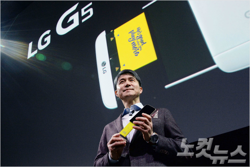 LG전자 MC사업본부장 조준호 사장이 21일(현지시간) 스페인 바르셀로나 ‘산 호르디 클럽’에서 열린 ‘LG G5 Day’ 행사에서 전략 스마트폰 ‘LG G5’를 소개하고 있다. LG전자 제공