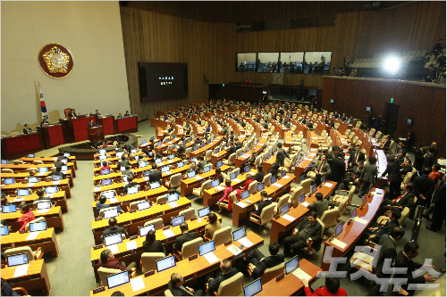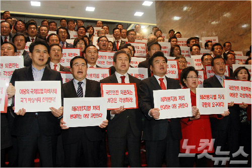 새누리당은 "국민 안전에 대한 테러"라고 성토했고 더불어민주당은 "민주주의 수호와 국민 인권 보호를 위한 헌정사에 획을 그을 결단"이라고 반박했다.