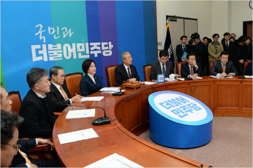 더불어민주당 김종인 비대위 대표, 이종걸 원내대표, 박영선 비대위원 등이 비상대책위 회의를 하고있다 (사진=더불어민주당 홈페이지 캡처)