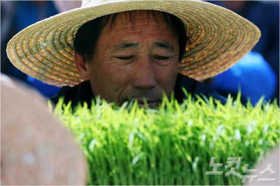 한 농민이 근심어린 표정으로 모판을 바라보고 있다. (사진=자료사진)
