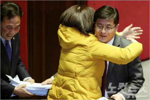 은 의원이 단상을 내려오며 비틀거리자 더민주 이종걸 원내대표 등 동료의원들이 "수고했다"고 말하며 은 의원의 어깨를 감싸안기도 했다.