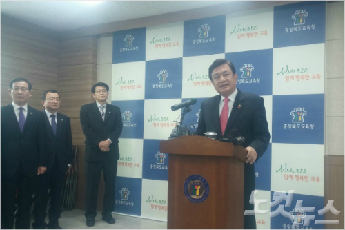 김 교육감은 25일 충청북도교육청에서 기자회견을 열고 "그동안 미뤄왔던 어린이집 누리과정 예산 6개월분을 집행하겠다"고 선언했다.