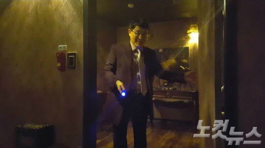 25일 CBS노컷뉴스 취재진과 함께 서울의 한 '방탈출카페' 긴급안전점검에 나선 경민대 소방안전관리과 이용재 교수(사진=김광일 기자)