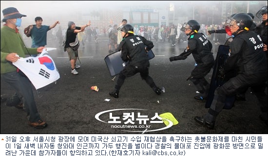 한편 미 쇠고기 수입 반대를 외치며 청와대로 향하던 시위대 2만여 명은 1일 아침에야 경찰에 강제 해산됐다. 밀려난 시위대는 이날 아침까지 서울 시청 광장 앞 일대에서 시위를 벌이다 경찰 병력에 대부분 해산됐다.