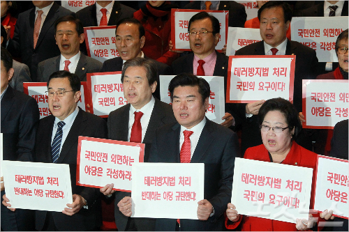 ◇ 與 "테러방지법 협상은 없다"그러나 새누리당은 현재 직권상정된 테러방지법에서 한 치도 물러설 수 없다는 입장이다.