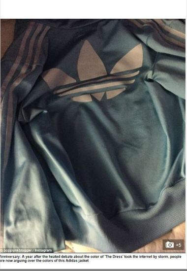 텀블러에 이 사진을 게재한 니나(아이디 poppunkblogger)는 "이 자켓을 소유한 내 친구는 파란색 바탕에 흰색 무늬로 보인단다. 반면 나는 검은색 바탕에 갈색 무늬로 보인다"고 했다.