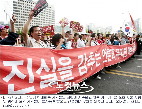 한편 대책위는 지난 30일 밤부터 1일 아침까지 이어진 미 쇠고기 수입 반대 가두시위에서 경찰의 강경 진압으로 60여명 이상이 부상을 입고 이 가운데 중상을 입은 사람이 속출했다고 설명했다