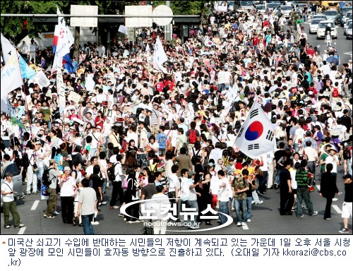 미국산 쇠고기 수입을 반대하는 촛불시위가 9일째 계속되자 경찰이 물대포와 경찰 특공대를 동원하는 초강수를 두면서 집회에 참여한 시민들의 피해가 늘고 있다. 경찰의 피해도 늘고 있지만 과잉진압을 우려하는 목소리도 커지고 있다. 오늘(1일) 집회는 오후 4시부터 시작되면서 긴장이 최고조에 이를 것으로 보인다.