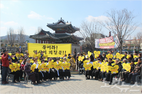 김성희 전북겨례하나 사무총장은 "3.1절을 맞아 역사의 아픔을 기억하고 그 아픔 중 가장 심금을 울리는 건 일본군 위안부 문제다"며 "그분들의 아픔을 새기고 우리가 무엇을 해야 할 지 고민하자는 의미였고 이 침묵의 외침을 한.일 정부가 듣기를 원한다"고 말했다.