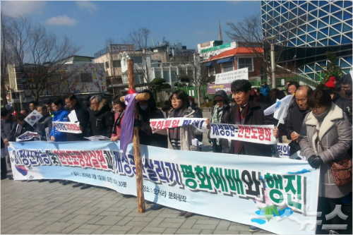 이들은 "북한의 핵개발과 인권탄압을 동의할 수 없으며 핵무기 없는 한반도를 원한다"며 "박근혜 정부의 대북정책으로는 북의 핵개발을 막을 수 없고 한반도를 전쟁 위기로 몰아갈 뿐이다"고 강조했다.