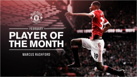 잉글랜드 프리미어리그 맨체스터 유나이티드는 4일(한국시각) 공식 홈페이지를 통해 래시포드가 팬이 뽑은 '2월의 선수'로 선정됐다고 밝혔다. 1군 팀 소속 공격수들의 연이은 부상에 루이스 판할 감독의 긴급 호출을 받은 래시포드는 무려 56%의 압도적인 지지로 31%의 멤피스 데파이를 제쳤다. 또 다른 후보인 제시 린가드는 13%에 그쳤다.