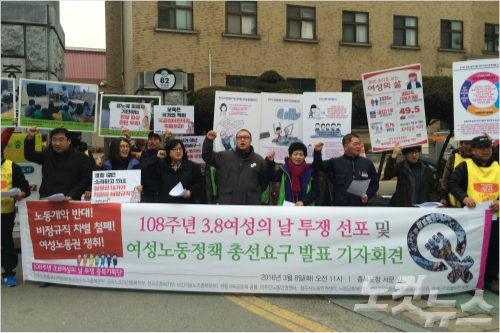 충북지역 시민사회단체가 108주년 3.8 세계여성의 날을 맞아 성평등한 고용과 노동을 위한 법제도개선을 총선에 나선 후보들과 정당에 요구했다.