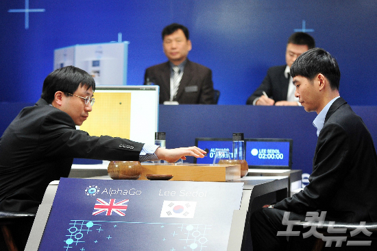 인공지능 알파고가 변칙적인 전략으로 도발하자 이세돌 9단의 장고가 이어지고 있다.